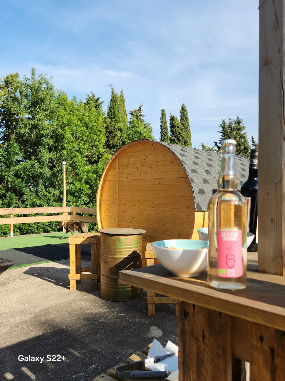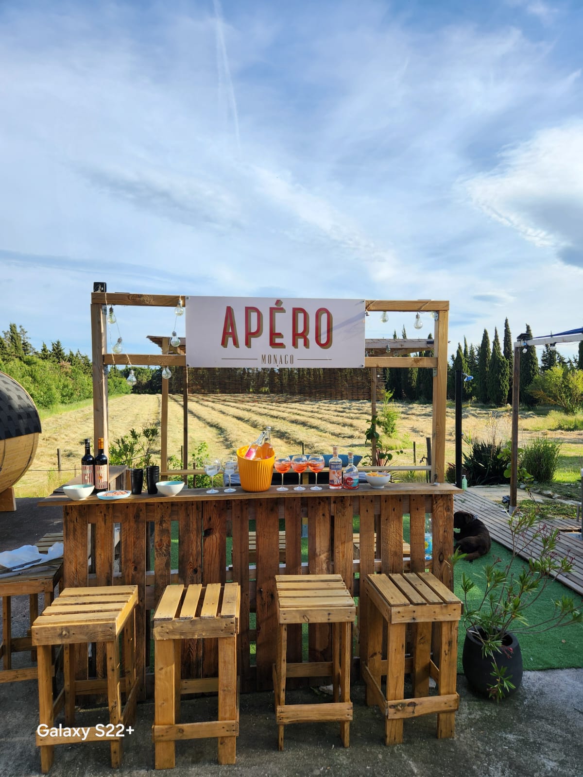 - Dégustation des vin du Domaine et Spritz Bar (avec service, 2 Spritz ou 2 verres de vins par personne inclus, snacks) 18€ TTC / PERS